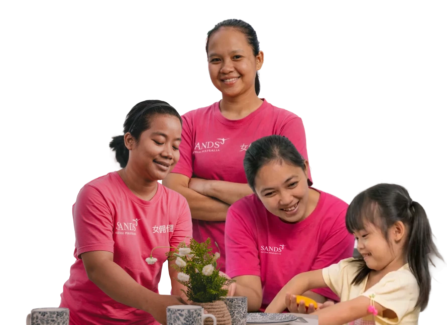 With over 24 years of experience and trusted by more than 30,000 satisfied clients, our focus remains on providing clients with the best value for their home care solutions. We provide unparalleled support for childcare, elderly care, and household management with ease and reliability. While other maid agencies compete in price wars, AP Sands offers value-for-money services with well-trained maids who receive extra training at AP Sands Training Center Sdn Bhd, at no additional cost, before being placed with an employer to ensure client satisfaction. Your journey to finding the right helper begins here.